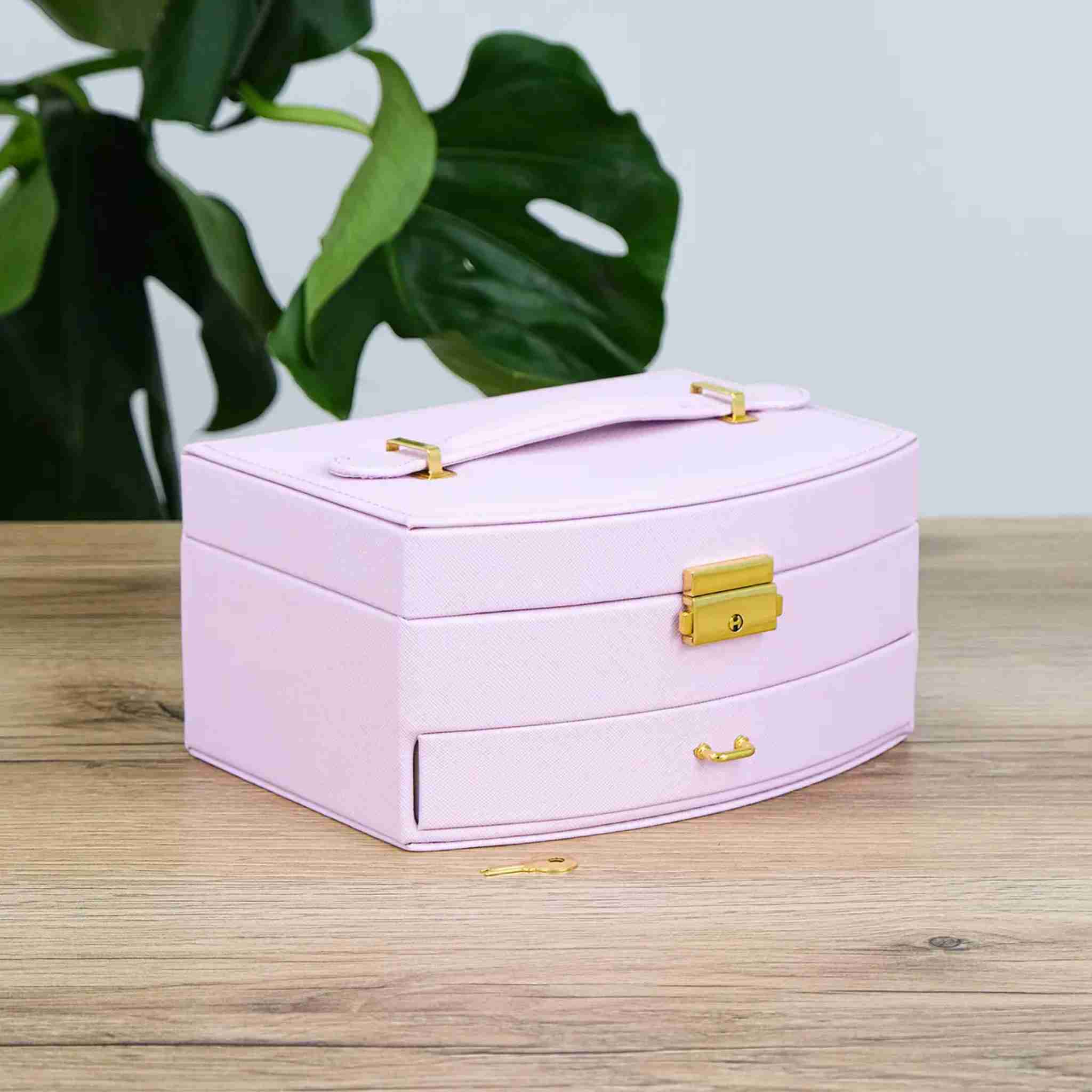 Скринька для прикрас двоярусна екошкіра Ніжні Лінії рожева