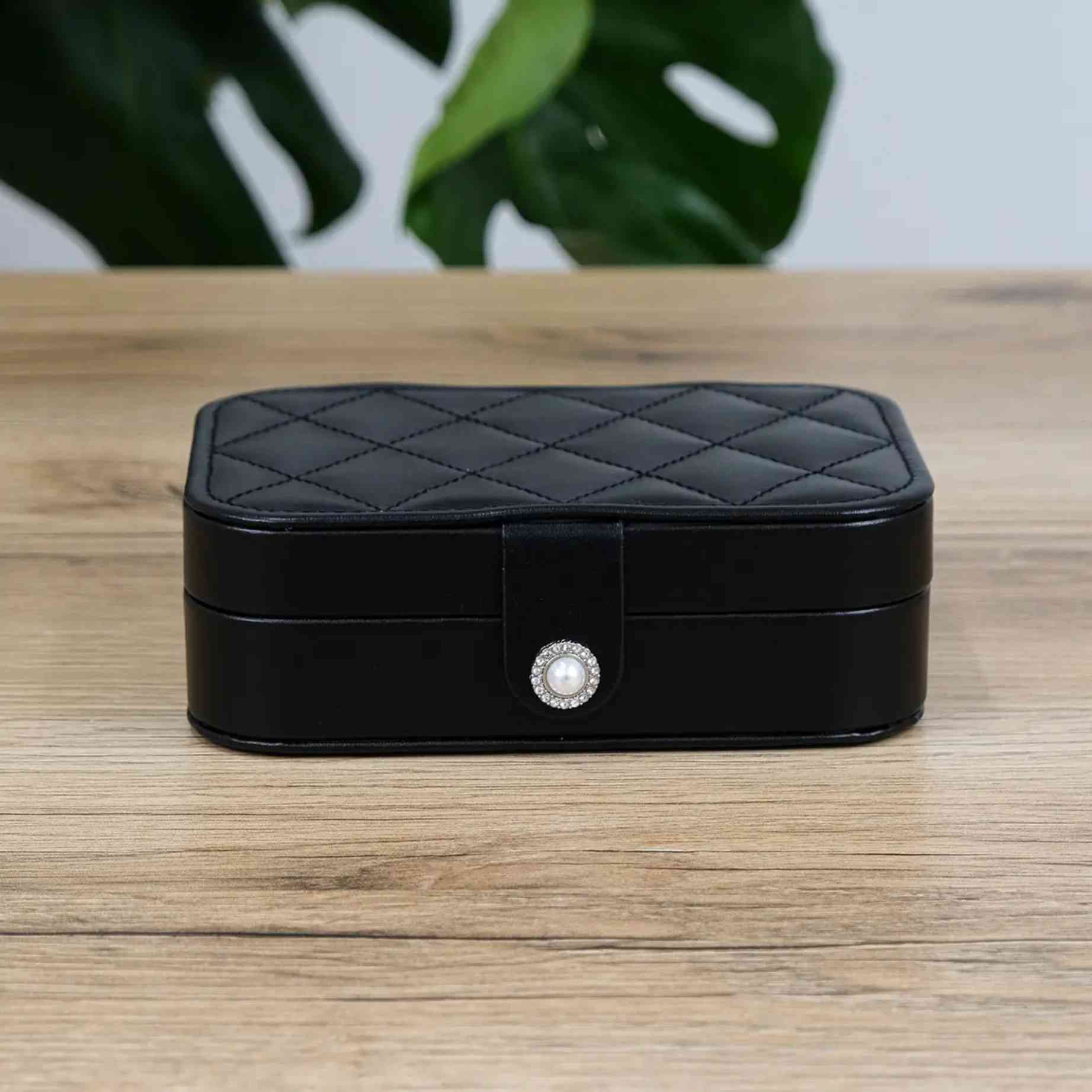 Чорна стьобана скринька для прикрас — це про акуратність, порядок і впевнену простоту без зайвого. Глибокий чорний колір у поєднанні з м’якою простьобкою створює відчуття зібраності та стилю, який не потребує яскравих акцентів. Така модель виглядає стримано і дорого — саме завдяки своїй лаконічності.