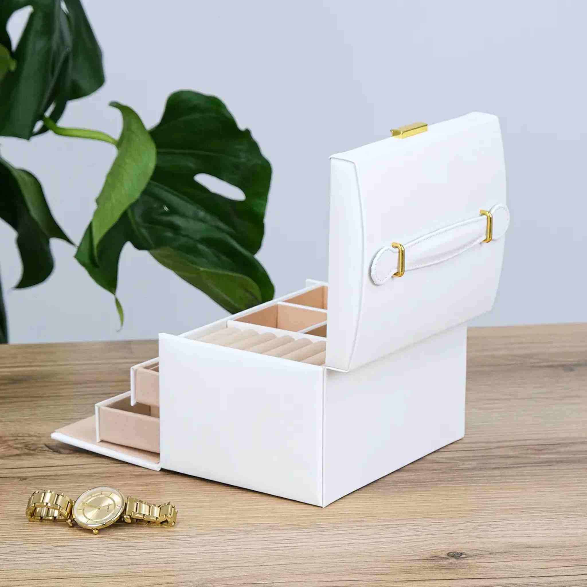 Скринька для прикрас триярусна екошкіра Естетика Порядку біла