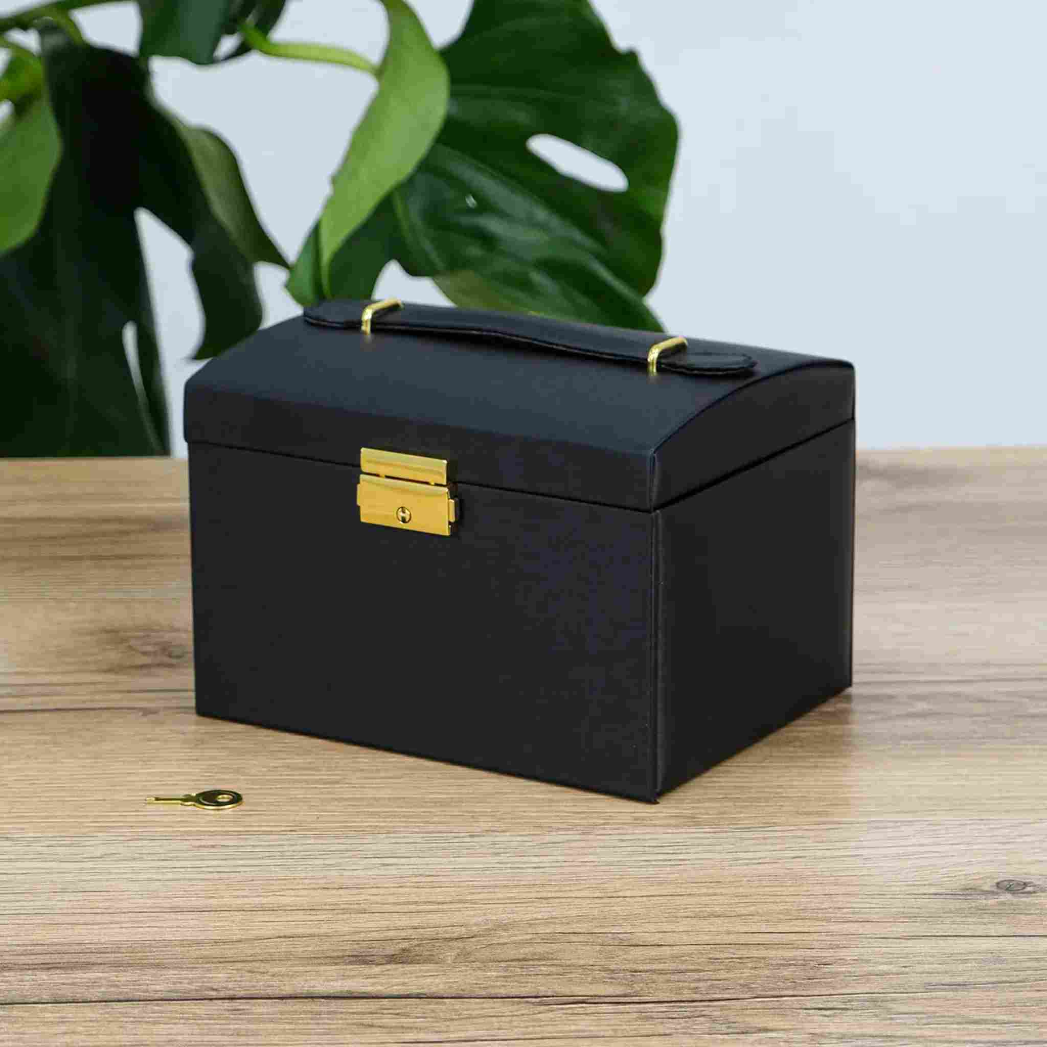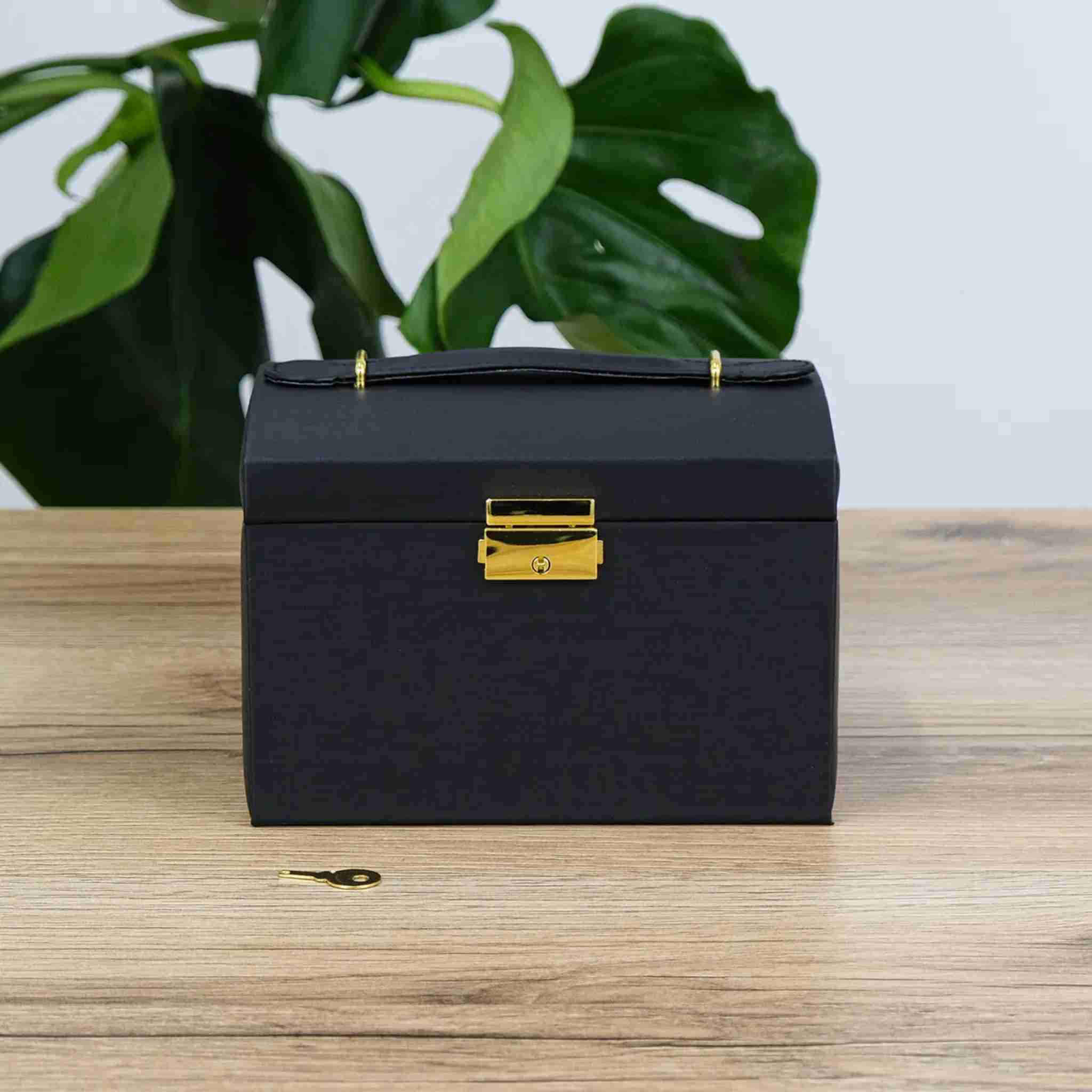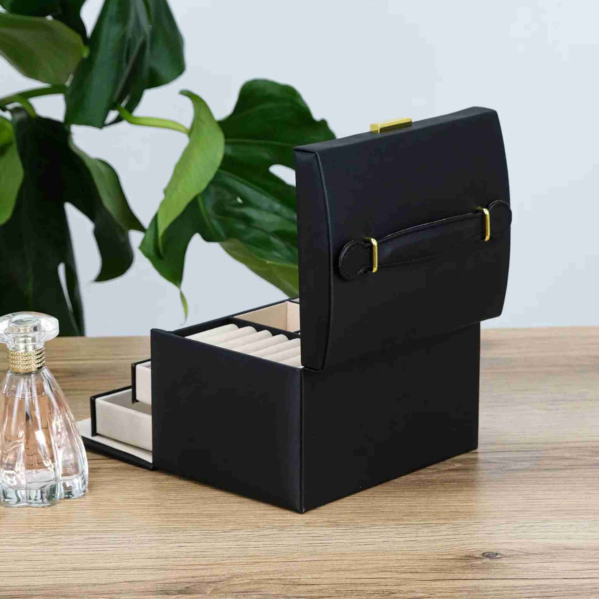 Скринька для прикрас триярусна екошкіра Естетика Порядку чорна