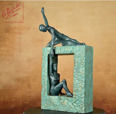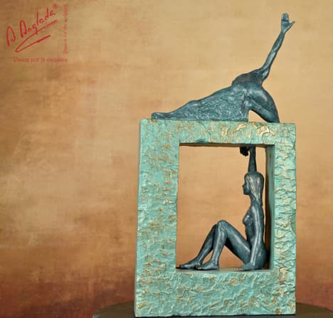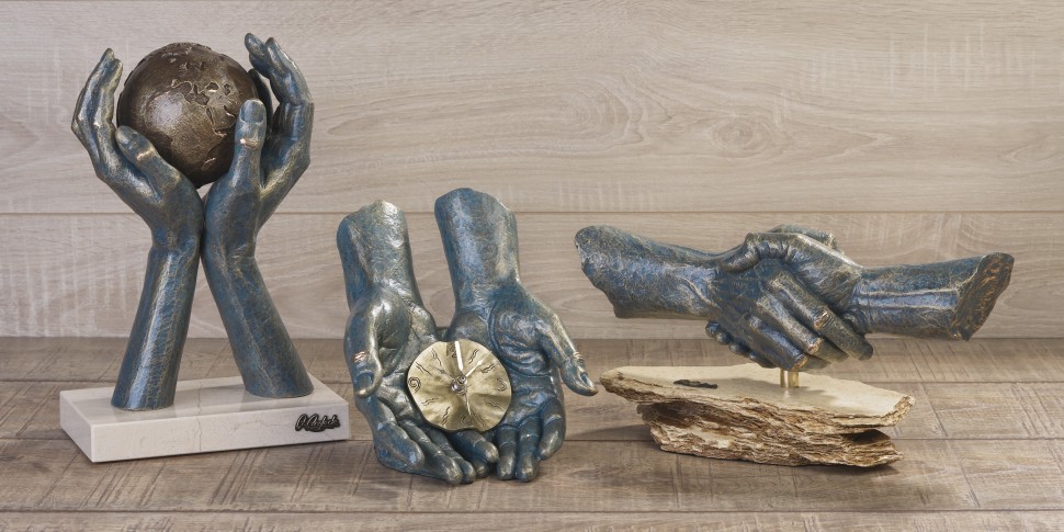 Каждая скульптура, выполненная в мастерской Anglada, обладает индивидуальным серийным номером и сертификатом.Основной материал изделий Anglada – это камень кальцит и глина. После лепки фигурки покрываются мраморной и металлической крошкой. При этом материал напыляется на изделие по особой 12-слойной технологии, поэтому покрытие отличается прочностью и долговечностью. Сверху наносится патина, которая придает готовым скульптурам эффект состаренной бронзы. Все этапы создания статуэток мастера выполняются вручную.