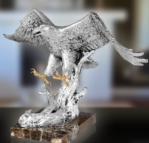 Скульптура ручной работы из 65% натурального камня, ручная роспись, посеребрение, каждое изделие уникально. Размеры примерно 55 x 30 x 34 см (Д x Ш x В) На мраморной плите Эта скульптура ручной работы из серии «Животные миры» изготовлена в художественной мастерской А.Англада в Испании. Начиная с шаблона, который полностью изготовлен вручную, только ограниченное количество копий отливается с использованием мастер-формы. В последующей художественной ручной работе тонкости искусственного камня обрабатываются и раскрашиваются вручную, с несравненной серебряной патиной из чистого серебра. Каждая фигурка имеет свой внешний вид и уникальна благодаря ручной работе. Поэтому наша иллюстрация может быть только примером. Вы можете увидеть скульптуру в Asmetec-Art в выставочном зале.