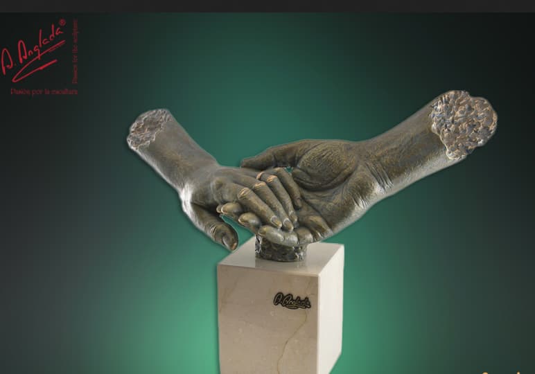 Каждая скульптура, выполненная в мастерской Anglada, обладает индивидуальным серийным номером и сертификатом.Основной материал изделий Anglada – это камень кальцит и глина. После лепки фигурки покрываются мраморной и металлической крошкой. При этом материал напыляется на изделие по особой 12-слойной технологии, поэтому покрытие отличается прочностью и долговечностью. Сверху наносится патина, которая придает готовым скульптурам эффект состаренной бронзы. Все этапы создания статуэток мастера выполняются вручную.