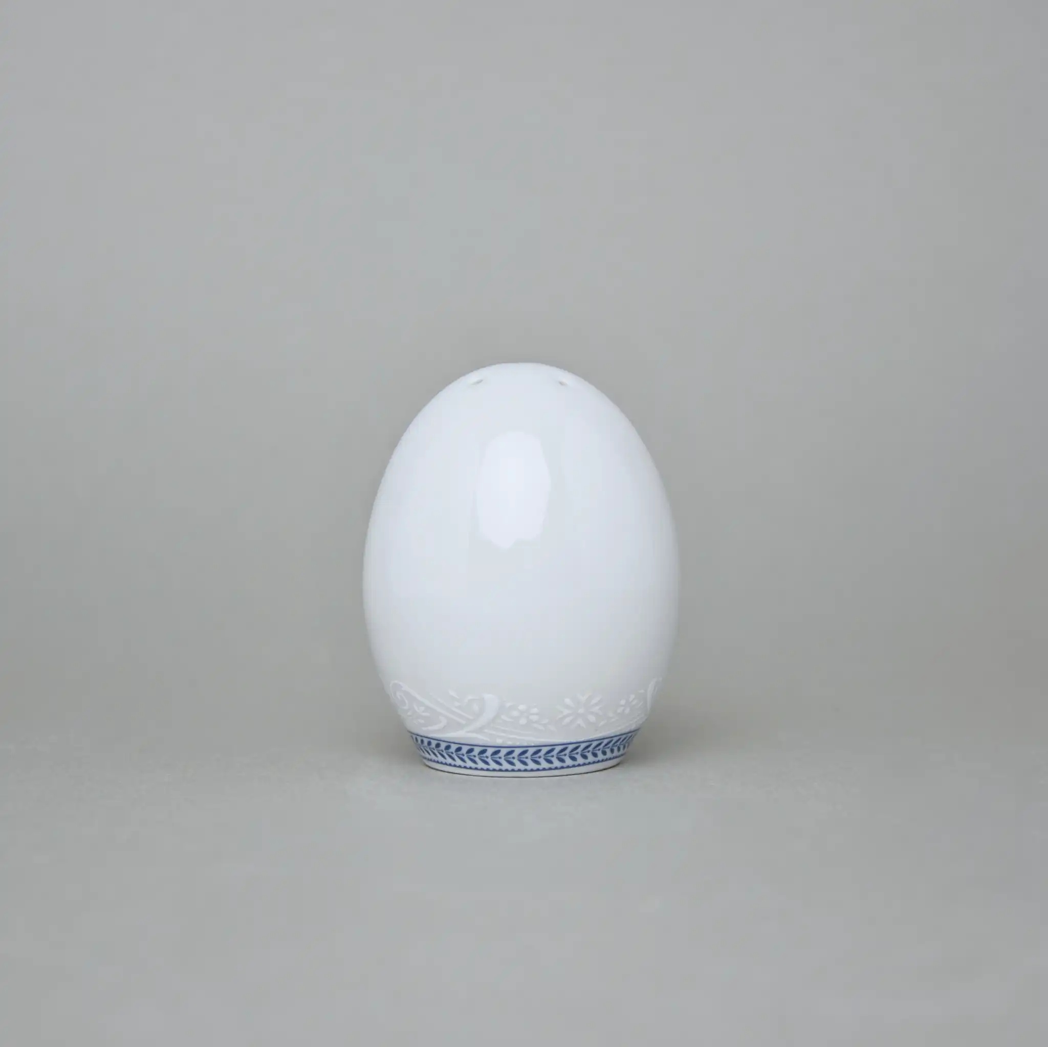 С первого взгляда — лаконичная, но чем дольше на неё смотришь, тем больше хочется поставить её в центр сервировки. Её округлая, «яичная» форма — символ мягкости и уюта, а нежное белое тиснение и тонкий голубой кант придают ощущение дорогой, аристократичной сдержанности.