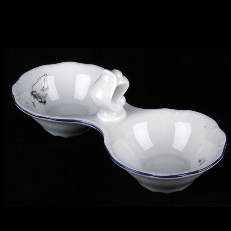 Солонка/Перечница двойная фарфоровая с рисунком Thun Constance Гуси и синей окантовкой