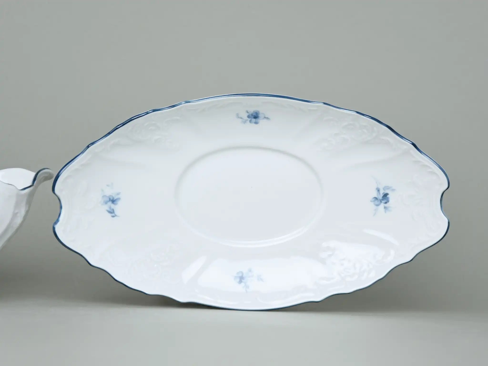 Соусник фарфоровый овальный белый декорированный с синей каймой Thun Bernadotte Апрельское Цветение 500 мл