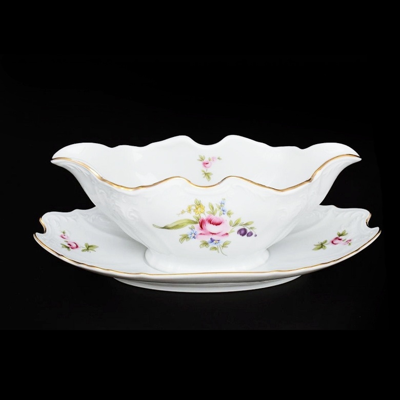 Декор из коллекции «Мейсенский букет» подчёркивает классический стиль изделия, придавая сервировке законченный и ухоженный вид. Этот соусник отлично сочетается с другой посудой серии Bernadotte и позволяет создавать полноценные сервизы без лишних усилий. Он подходит для любого интерьера — от строгой классики до уютного кантри.
