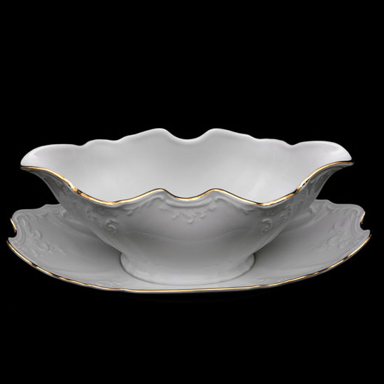 Соусник фарфоровый овальный белый с золотой каймой Bernadotte Обводка Золото 500 мл