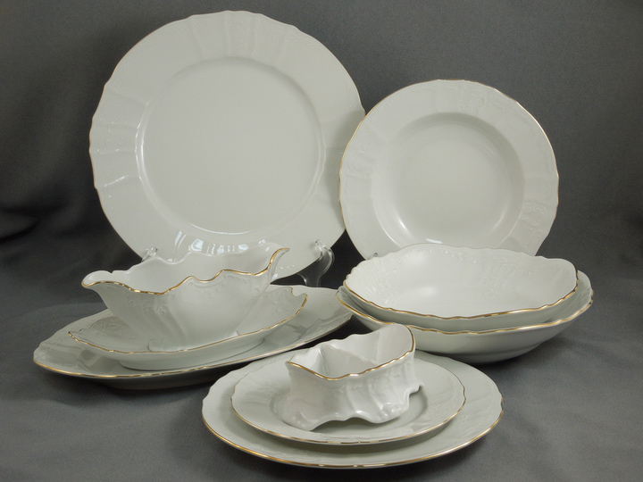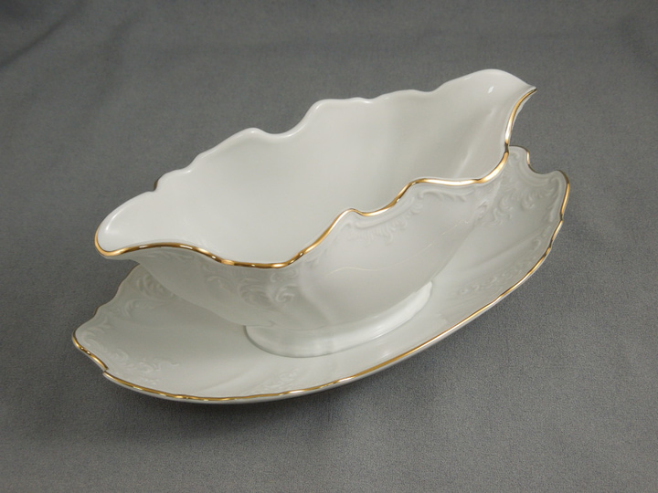 Соусники Bernadotte с золотой обводкой — это воплощение утончённой классики в деталях. Миниатюрный объём 0,05 л идеально подходит для индивидуальной подачи соуса, сливок или меда — он добавляет нотку аристократизма даже самому простому блюду. А большой овальный соусник на 0,5 л — настоящий сервировочный шедевр, достойный праздничного стола. Элегантная форма, плавные линии и роскошная позолота делают каждый из них настоящим украшением композиции.