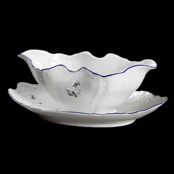 Соусник фарфоровый овальный с рисунком Bernadotte Гуси 0.5 л с синим кантом
