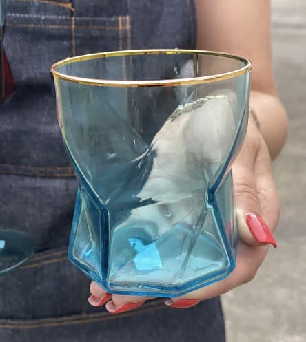Эти бокалы и стаканы словно созданы, чтобы подчеркнуть характер каждого напитка — будь то холодный лимонад, игристое шампанское или освежающая вода с долькой цитруса. Грани стекла словно играют со светом, а голубой цвет будто переносит вас в морское утро, наполненное прохладой и ясностью.