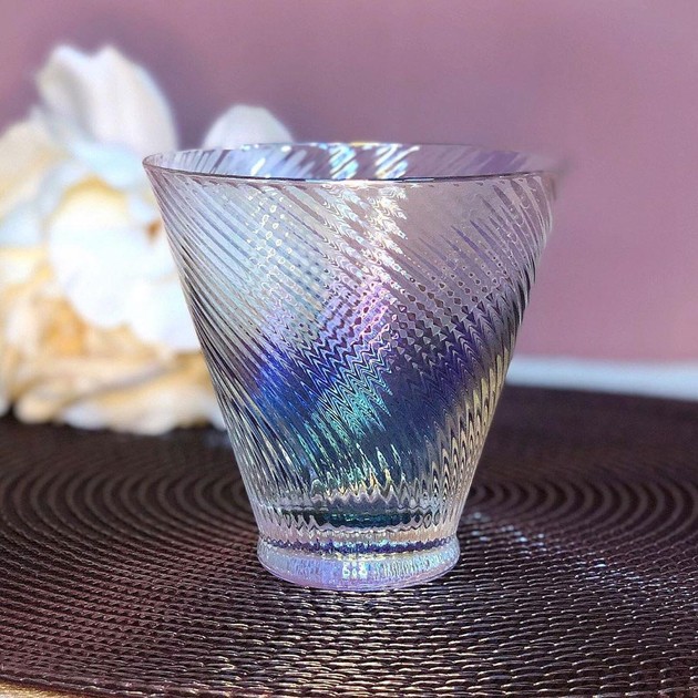 Невероятная игра света на поверхности этих бокалов и стаканов завораживает с первого взгляда. Перламутровое покрытие с эффектом градиента раскрывается по-новому в каждом луче — от нежного розового до холодного голубого. Это не просто посуда, это акцент в интерьере, комплимент вкусу и эстетике хозяев дома.