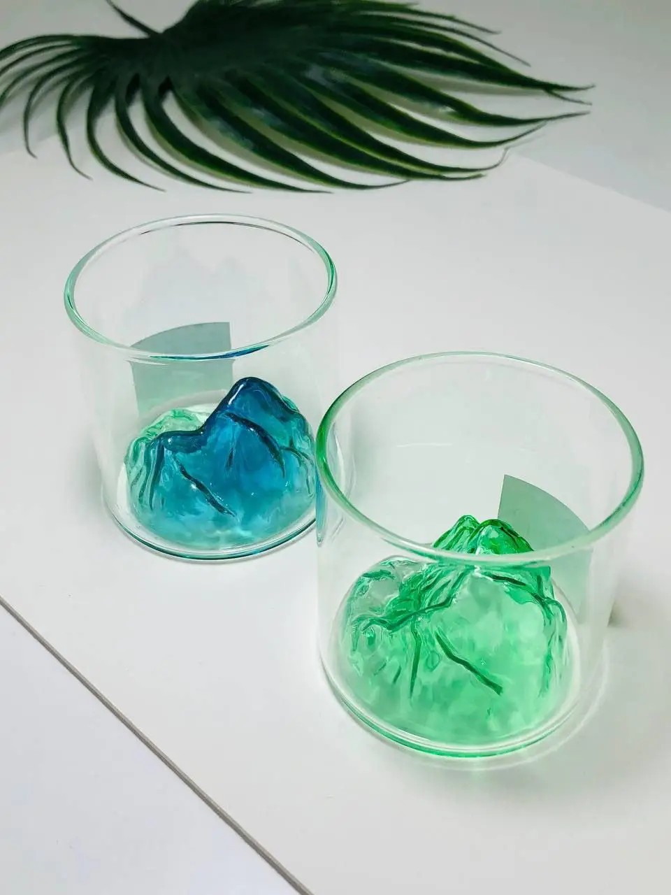 Толстое стекло гарантирует прочность и долговечность, а внутренняя «гора» из цветного стекла — это акцент, который запоминается. Такой стакан станет оригинальным подарком для ценителей уникального дизайна и для тех, кто любит окружать себя предметами с характером.
