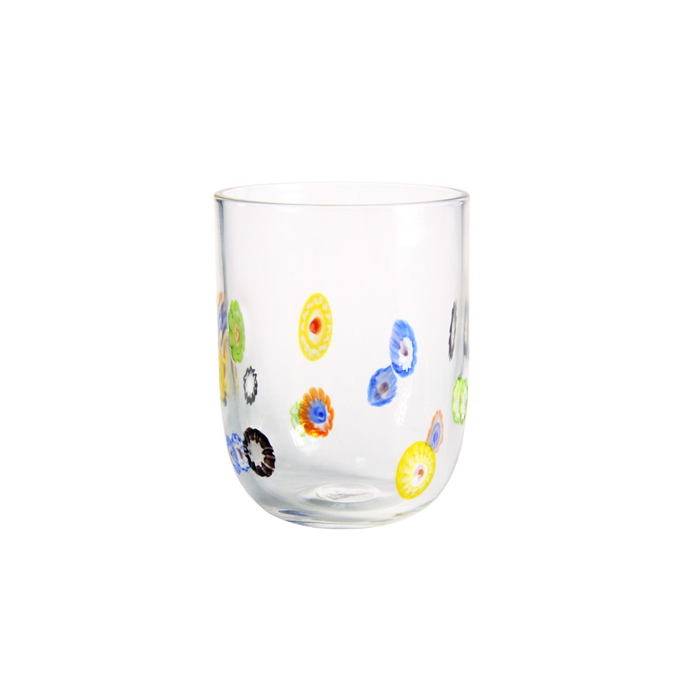 Эти стаканы невозможно спутать ни с чем: прозрачное стекло украшено яркими точечными узорами, будто цветы, нарисованные солнцем. Каждый стакан — это жизнерадостный штрих, который добавит на стол лёгкость и позитив. Благодаря разноцветным деталям, каждый глоток становится визуально вкуснее, а сам стакан притягивает взгляд.