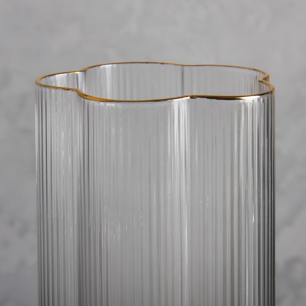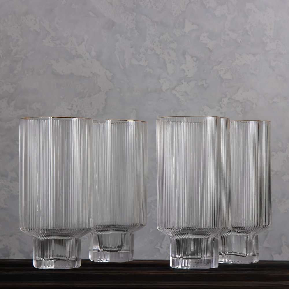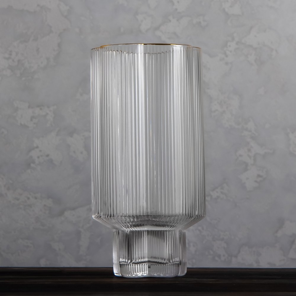 Этот стеклянный стакан притягивает внимание элегантной геометрией и выразительным рельефом. Его вертикальные грани не только придают утончённый облик, но и удобно ложатся в руку, обеспечивая комфортное удержание. Универсальный объём делает его отличным выбором для подачи воды, сока, коктейлей или даже утреннего смузи.