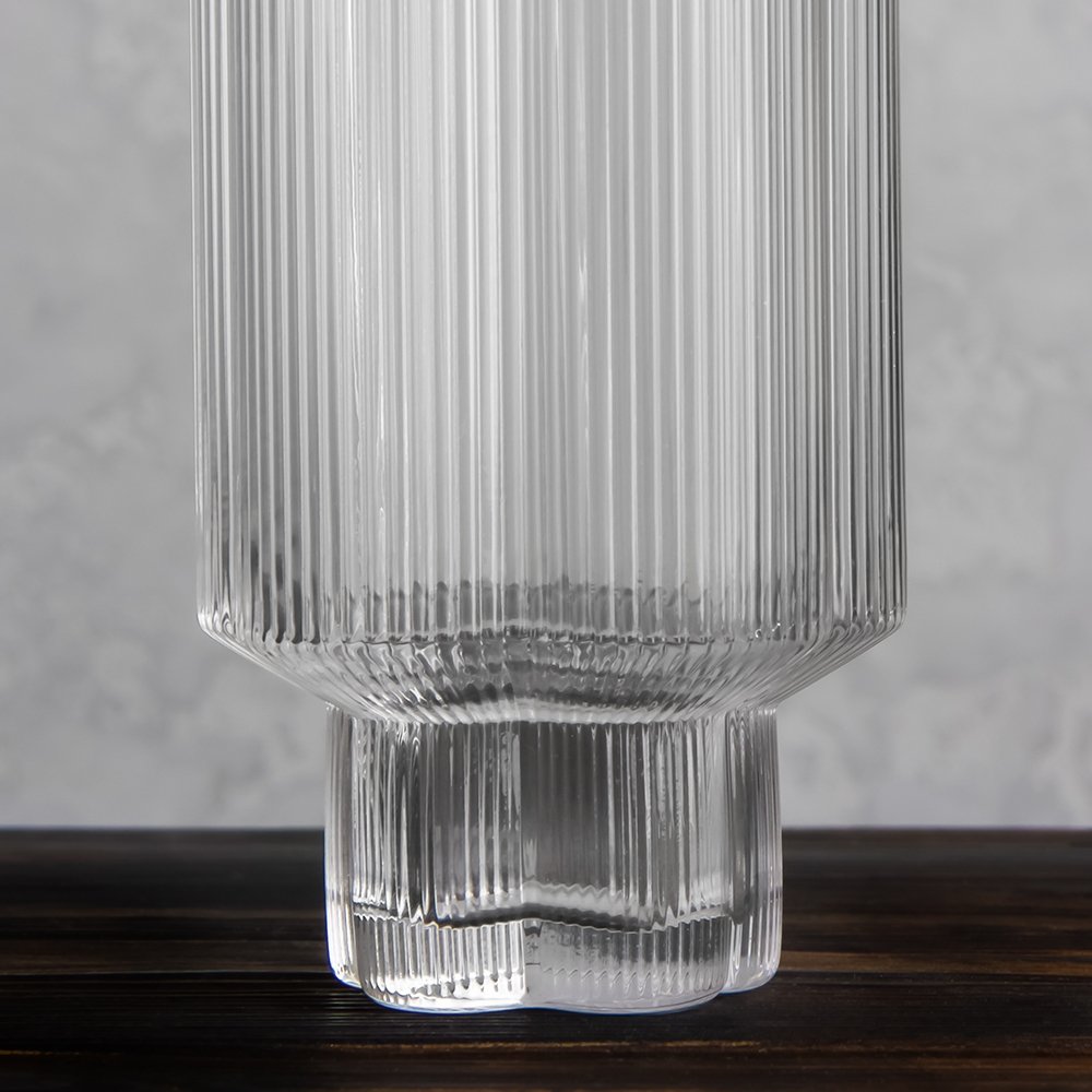 Он идеально впишется как в современную сервировку, так и в повседневную подачу. Прозрачное стекло с рельефной текстурой красиво преломляет свет и подаёт напитки в самом выгодном свете — это отличный способ подчеркнуть эстетичность даже обычной воды. Дополнительным штрихом служит устойчивое основание, которое надёжно стоит на поверхности.