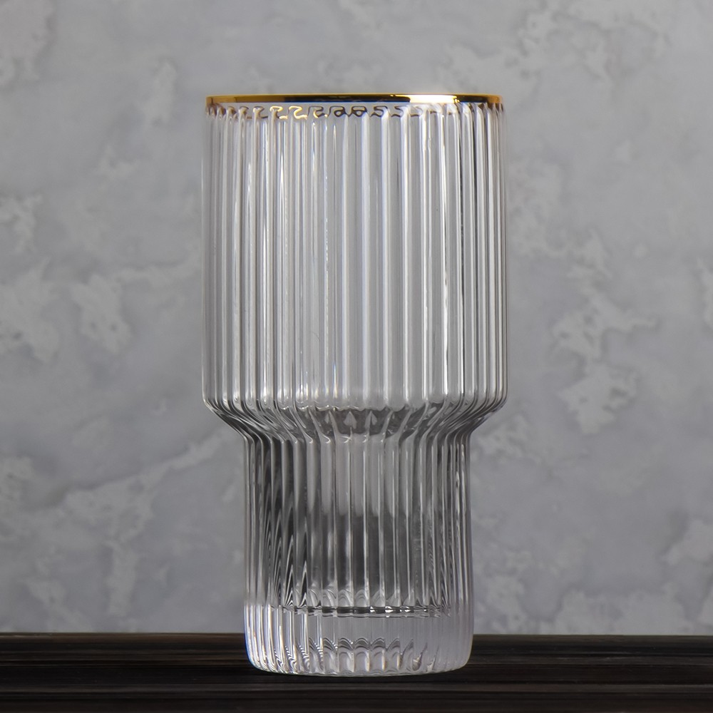 Этот стеклянный стакан притягивает внимание элегантной геометрией и выразительным рельефом. Его вертикальные грани не только придают утончённый облик, но и удобно ложатся в руку, обеспечивая комфортное удержание. Универсальный объём делает его отличным выбором для подачи воды, сока, коктейлей или даже утреннего смузи.