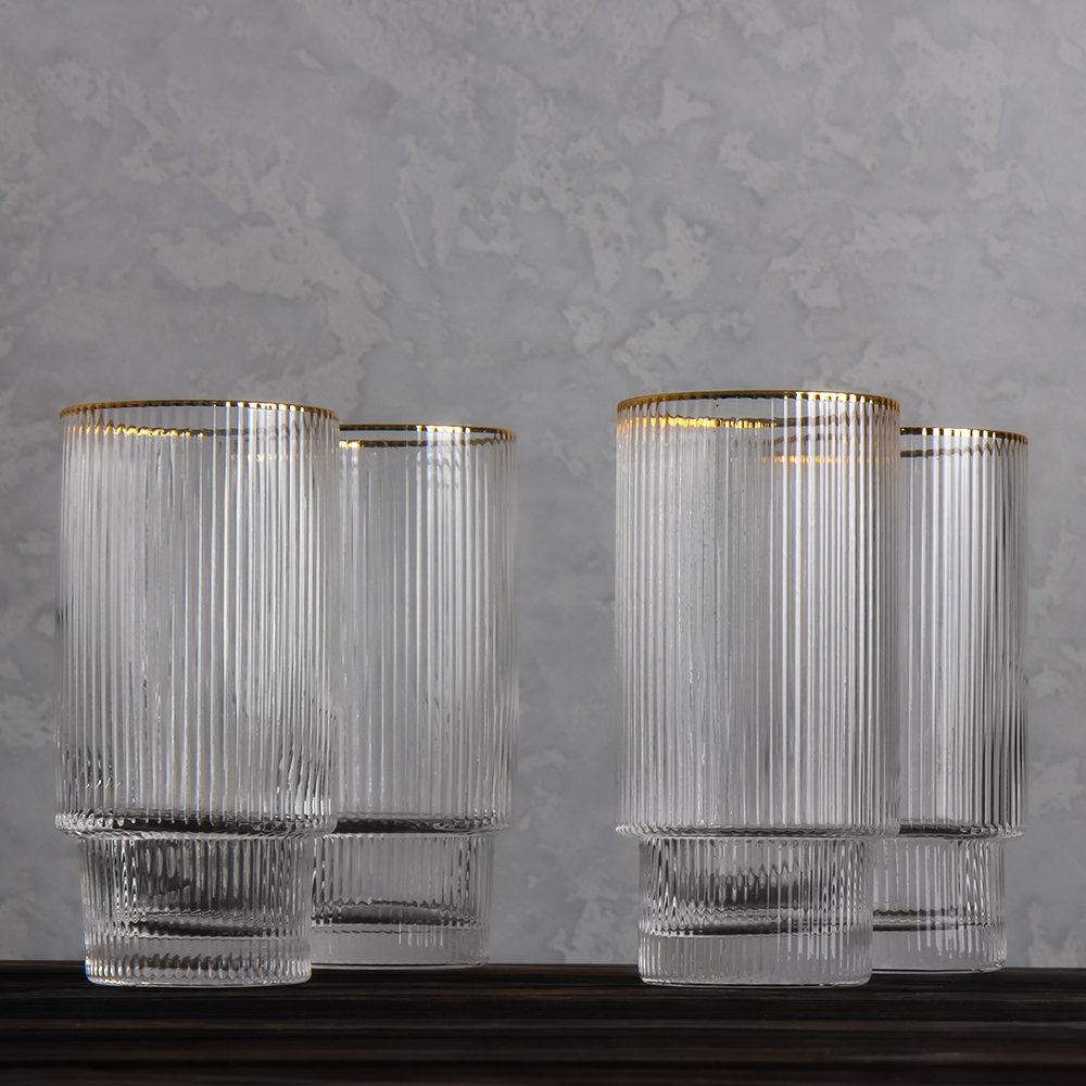 Этот стеклянный стакан притягивает внимание элегантной геометрией и выразительным рельефом. Его вертикальные грани не только придают утончённый облик, но и удобно ложатся в руку, обеспечивая комфортное удержание. Универсальный объём делает его отличным выбором для подачи воды, сока, коктейлей или даже утреннего смузи.