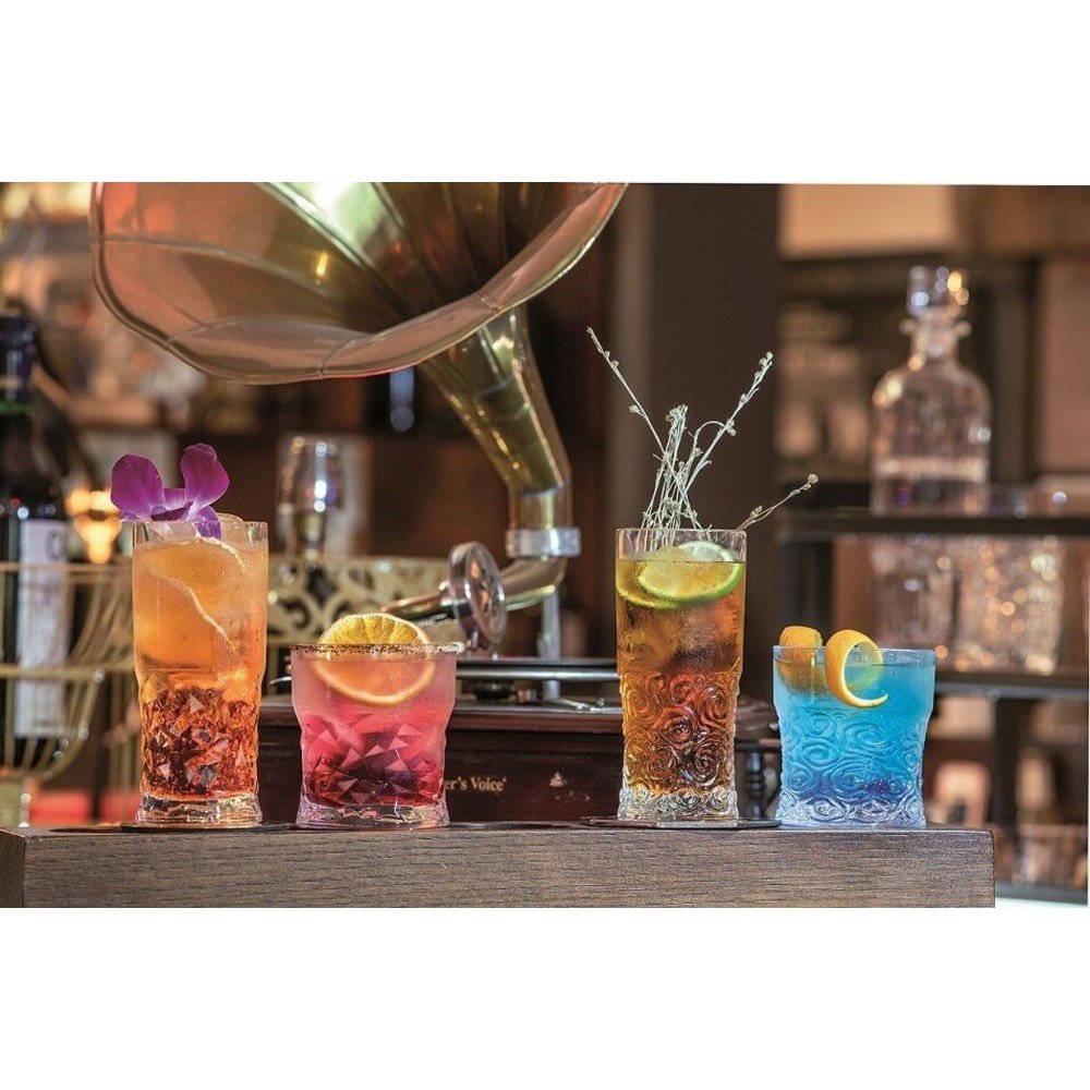 Каждый стакан имеет прочную основу и оригинальную текстуру, которая делает подачу напитков более выразительной. Дизайн гармонично сочетает в себе простоту и изысканность, благодаря чему такие стаканы легко вписываются как в повседневный ужин, так и в праздничный стол.