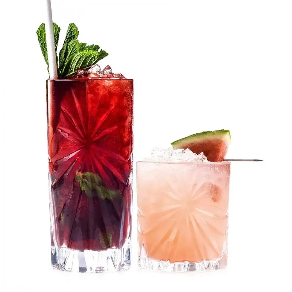 Для тех, кто предпочитает более вместительную посуду, представлен стакан 360 мл. Его вытянутая форма не только смотрится стильно, но и позволяет наслаждаться напитками с большим количеством льда или эффектной подачей коктейлей. Такой вариант отлично подходит как для домашних вечеров, так и для праздничных встреч.