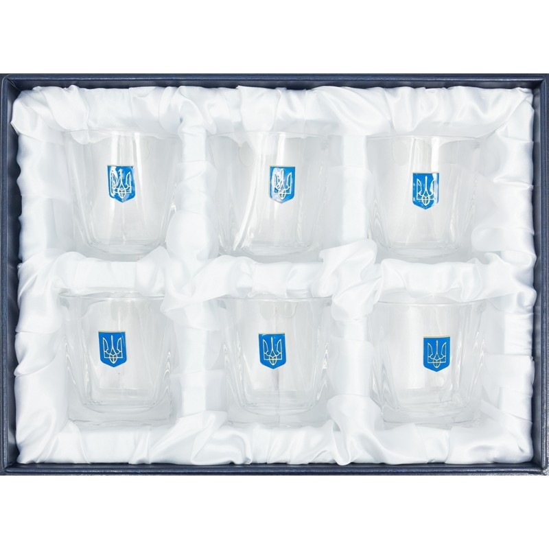 Бокалы для виски хрусталь "Герб Украины" 6шт, 300 мл позолота
