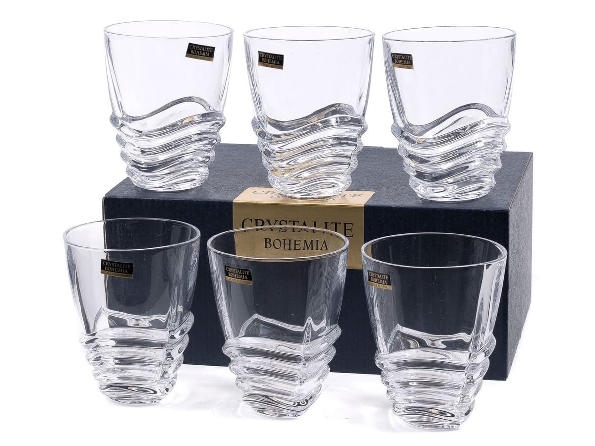 Оригинальные стаканы для виски и рома с эко хрусталя конусной формы и имеет декор волны, такие бокалы украсят и праздний стои и станут отличным подарком на День Рожденье