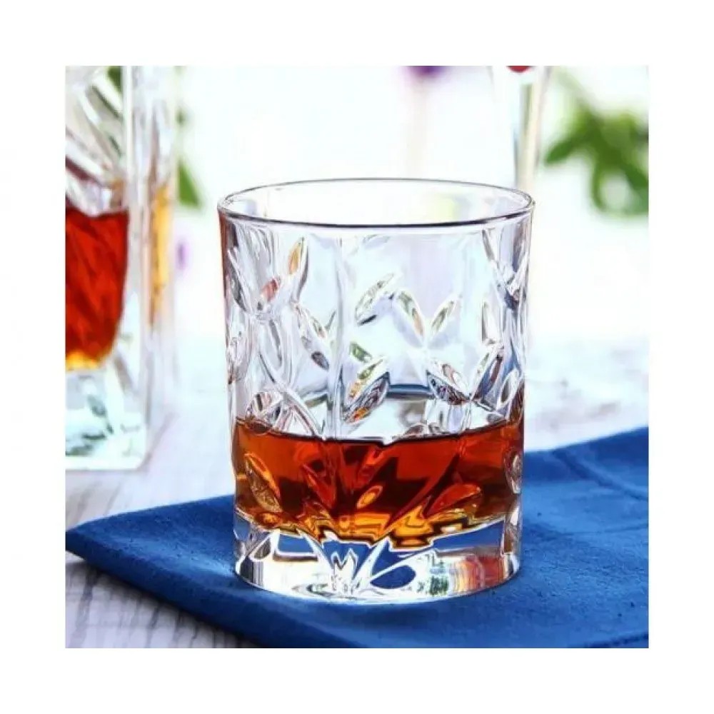 Ця модель відзначається компактністю та універсальністю. Об’єм 330 мл ідеально підходить для подачі води, соків чи міцних напоїв. Міцний матеріал і потовщене дно забезпечують зручність у використанні, а легкий блиск орнаменту додає естетики. Такий посуд підкреслить ваш витончений смак і служитиме роками.