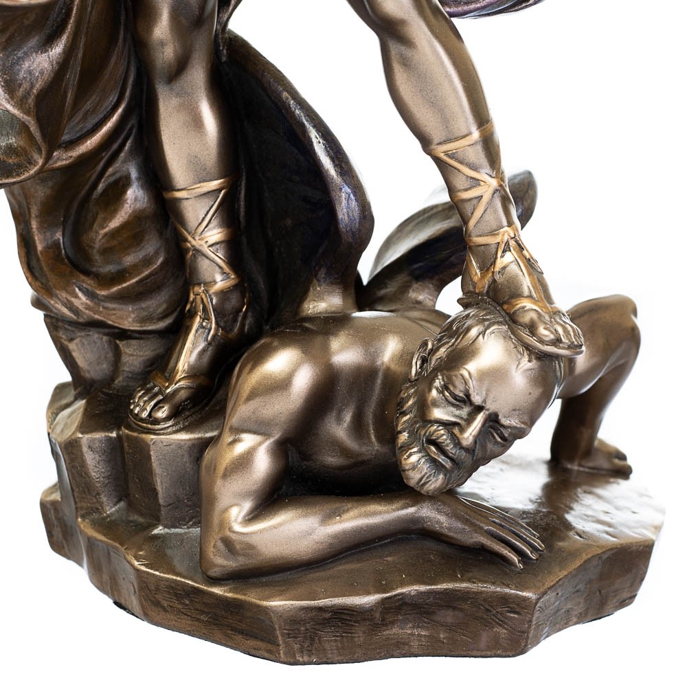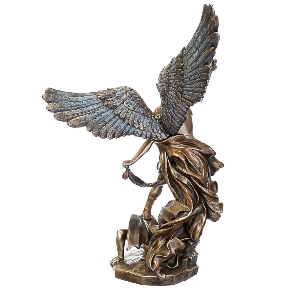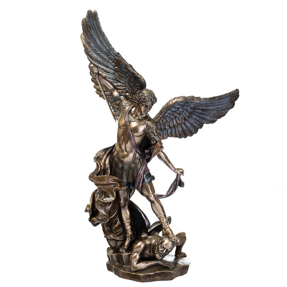 Статуетка «Архангел Михайло» - символ покровителя та захисника всіх людей. Його вважають ватажком Світла, який керує військом Господнім та веде його боротися з армією сили Темряви. Виріб виготовлений із полістоуну (штучний камінь), покритий напиленням із бронзи; та упаковано в подарункову коробку, що надає йому престижності та розкоші. Завдяки надійній упаковці, виготовленій із пінопласту з поглибленнями для найменших деталей, Ви можете бути впевненими у безпеці при транспортуванні.
