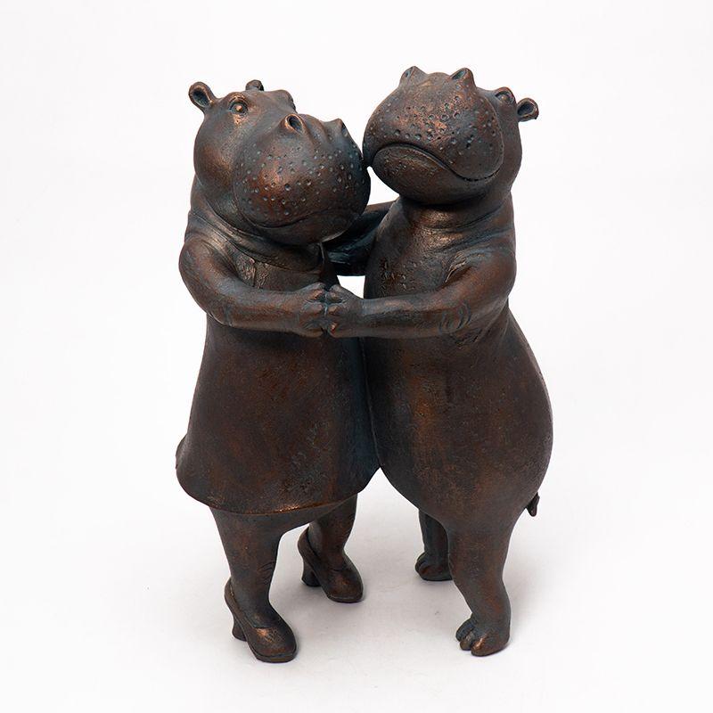 Статуэтка бегемотов стилизованная под бронзовую "Парочка" 28×20×41,5 см