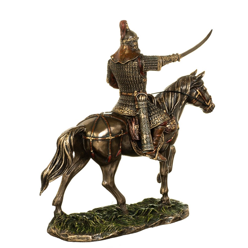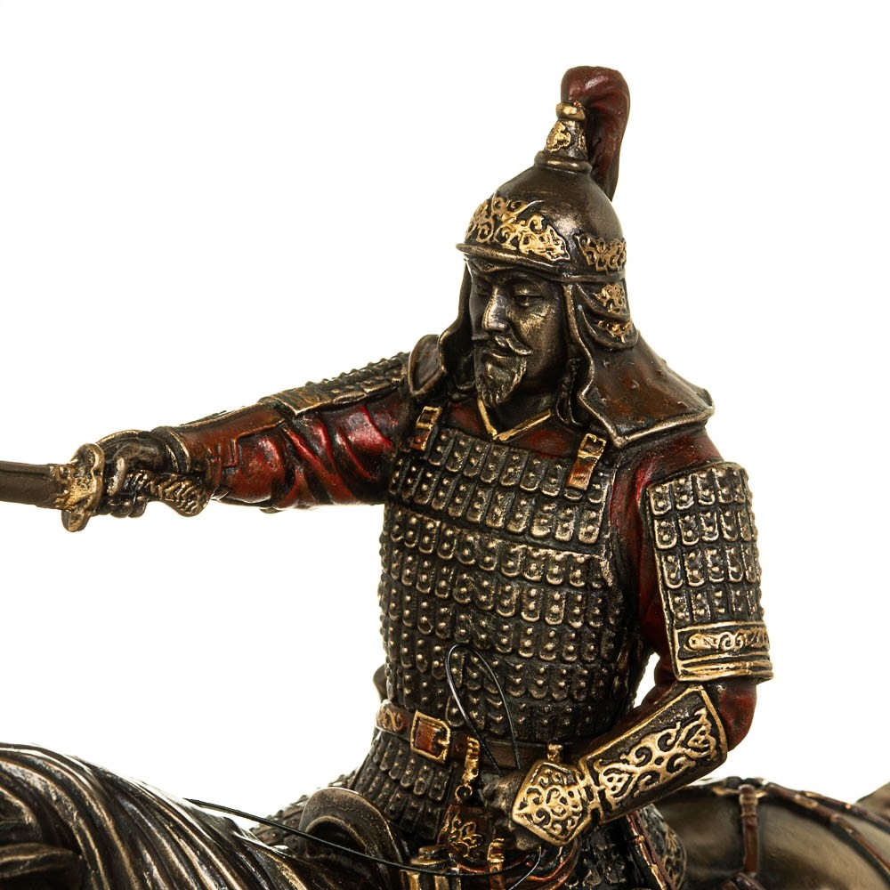 Бронзова статуетка Чингісхана - оригінальний сувенір із бронзи подарунок військовому, держслужбовцю та колекціонеру. Статуетка виготовлена з полістоуну (штучного каменю) та покрита бронзовим напиленням. Запакована в красиву подарункову упаковку. Так що, купуючи цю статуетку, ви купуєте цінний і красивий подарунок, який не вимагає доповнення.