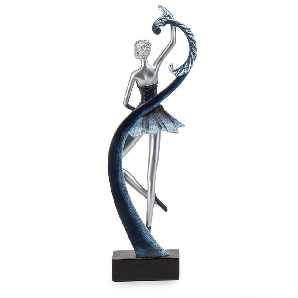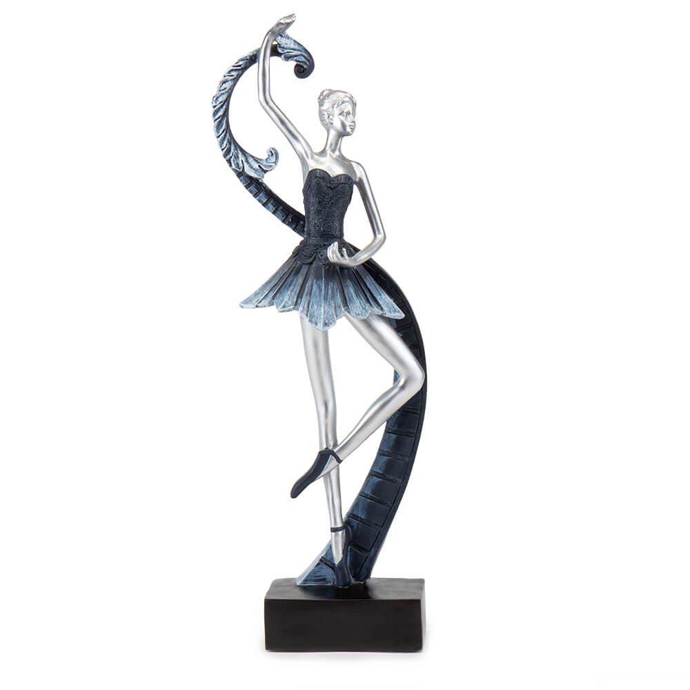 Декоративная фигурка балерины вызывает невероятный восторг своей элегантной формой, реалистичными деталями, качеством. Статуэтка балерины - это креативный декор для дома и отличный подарок для девочки, подруги или второй половинки. Особенно в восторге будут ценители балета! Статуэтка имеет изысканный внешний вид, она изготовлена из высококачественного материала - полистоуна, имеет серебряный цвет и благородный синий наряд балерины. Фигурка устойчиво стоит на черной подставке.