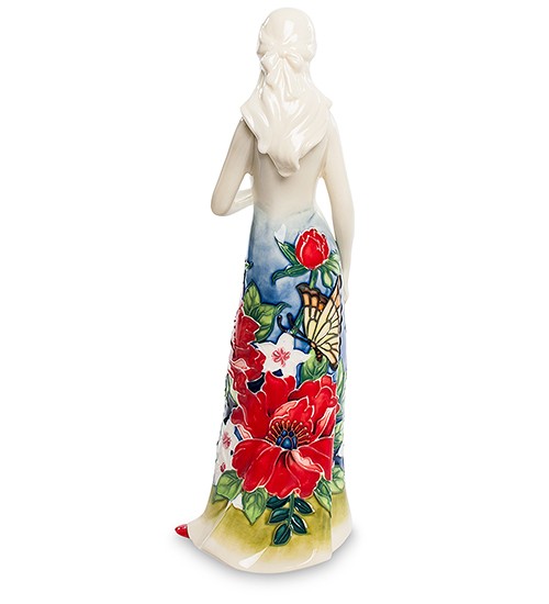 Ця порцелянова дівчина прекрасна, як сама Весна. Довга сукня панянки покрита квітами та листям трав. Різноманітна флора привернула увагу великого метелика жовтого кольору. Вона теж вирішила прикрасити собою вбрання красуні. У руці дівчина дбайливо тримає невелике пташеня, що символізує собою турботу.