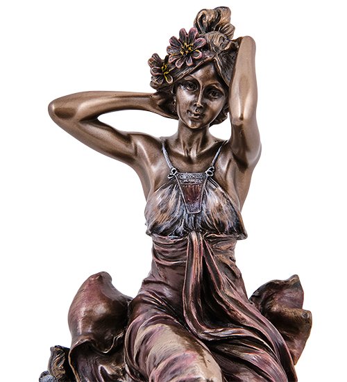 Статуэтка из полистоуна «Дама» (Альфонс Муха) — изящный образ, в котором сочетаются женственность, пластика линий и декоративная выразительность в духе ар-нуво. Фигура словно оживает в движении: мягкие складки платья струятся вниз, а цветы, обвивающие силуэт, создают ощущение лёгкости и естественной гармонии.