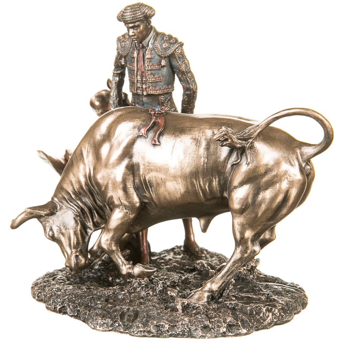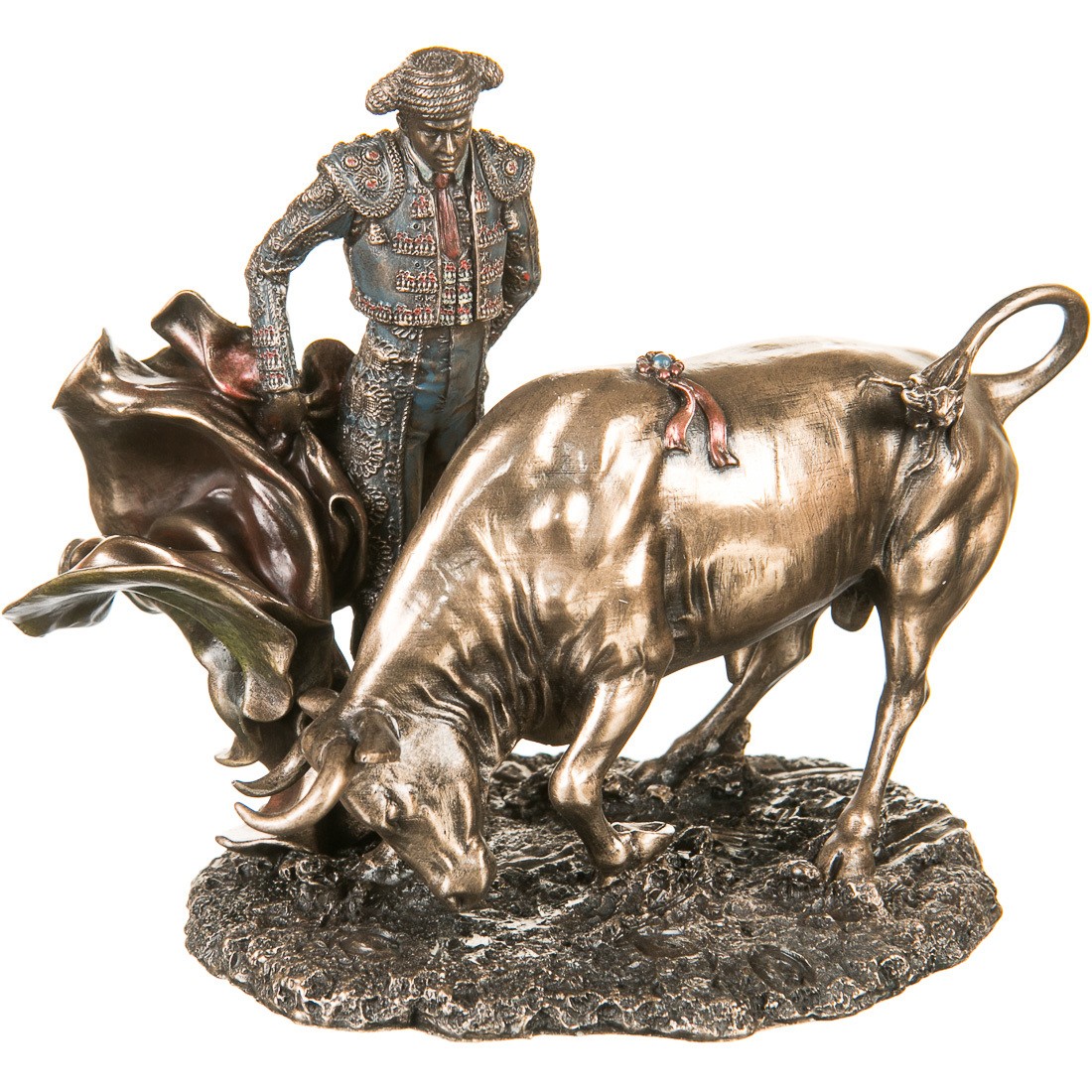Корида - бій биків, походження пов'язане з давнім культом бика. З початку 18 ст. - Традиційне циркове видовище в Іспанії, Португалії, Південній Франції, країнах Латинської Америки. Матадор - головний учасник іспанського бою бугаїв, що вбиває бика. Це сильна, смілива людина, яка не боїться ризикувати життям. Бій людини з биком захоплююче видовище, бій не життя, але в смерть. Таку статуетку можна подарувати начальникові, чоловікові, братові. Це хороший подарунок для людей, які цінують якісні та дизайнерські речі. Виріб виготовлений із полістоуну (штучний камінь), покритий напиленням із бронзи; та упаковано в подарункову коробку, що надає йому престижності та розкоші. Завдяки надійній упаковці, виготовленій із пінопласту з поглибленнями для найменших деталей, Ви можете бути впевненими у безпеці при транспортуванні.
