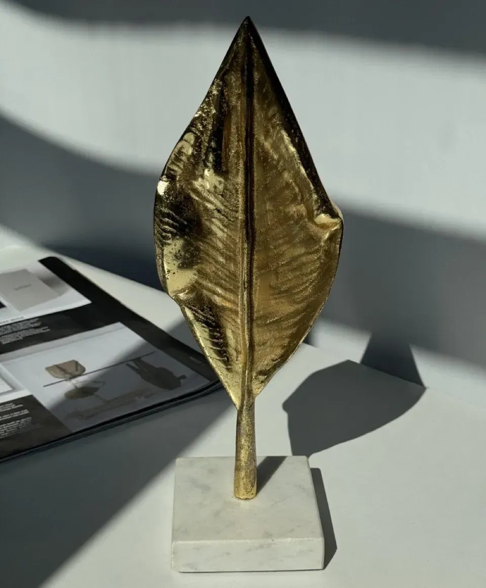 Сувенір «Золотий листок на підставці» — це вишуканий декоративний акцент, який додає інтер'єру відчуття гармонії, тепла та витонченості. Його форма, натхненна природою, поєднує естетику органічних ліній і сучасного мінімалізму. Металеве виконання з золотистим блиском надає виробу елегантності та статусності.