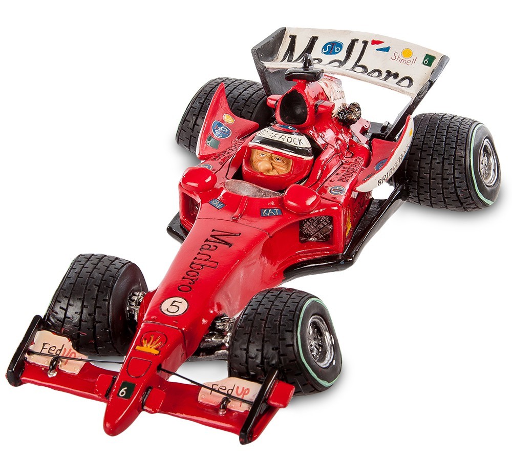 Можно не сомневаться, что машина «Pole position» станет самым лучшим подарком для поклонников Формулы 1. Дизайн фигурки авто практически ничем не отличается от его настоящего прототипа: ярко-красный автомобиль украшен знаменитыми логотипами и надписями. Благодаря красоте и изяществу, забавная фигурка займет лидирующее место не только в гоночных состязаниях, но и в списке самых роскошных и утонченных изделий.