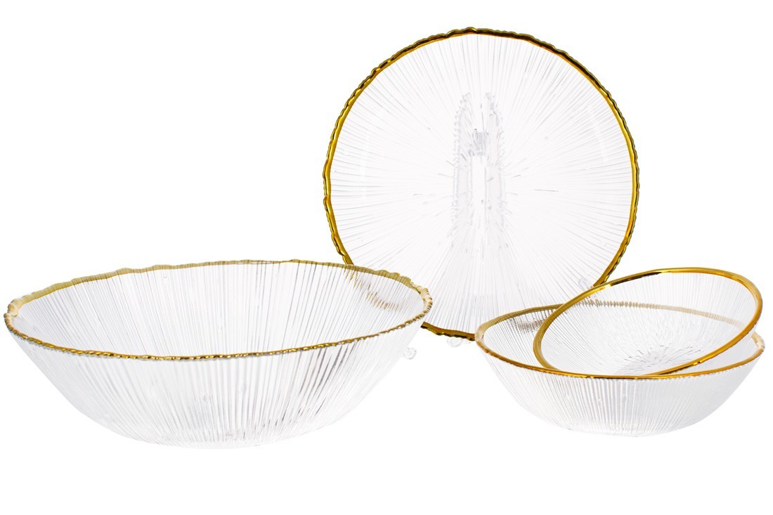 Стеклянная пиала Shine - функциональная и декоративная стеклянная посуда для современного интерьера. Выполнена из стекла с полупрозрачной текстурой и тонким золотым кантом. Необычная форма с золотистой каймой создает праздничную атмосферу за столом. Коллекция Shine для праздничного застолья и хорошего настроения!