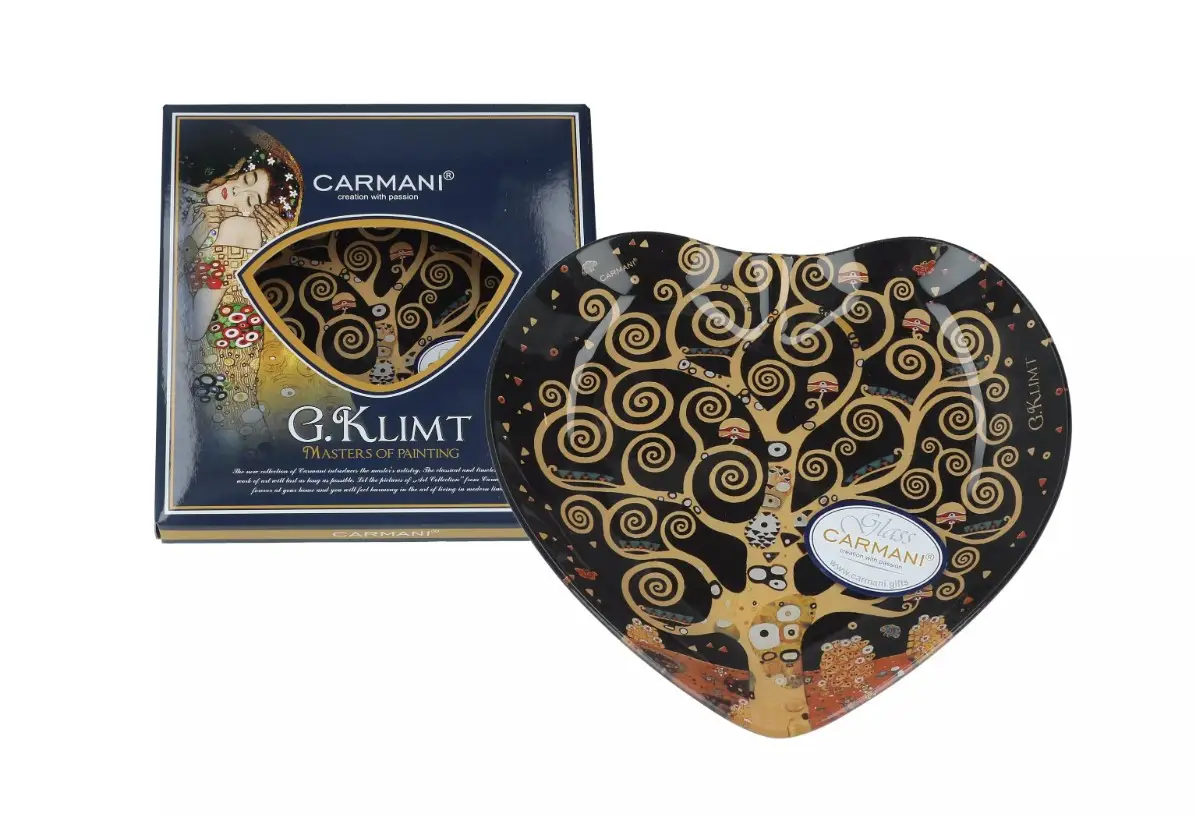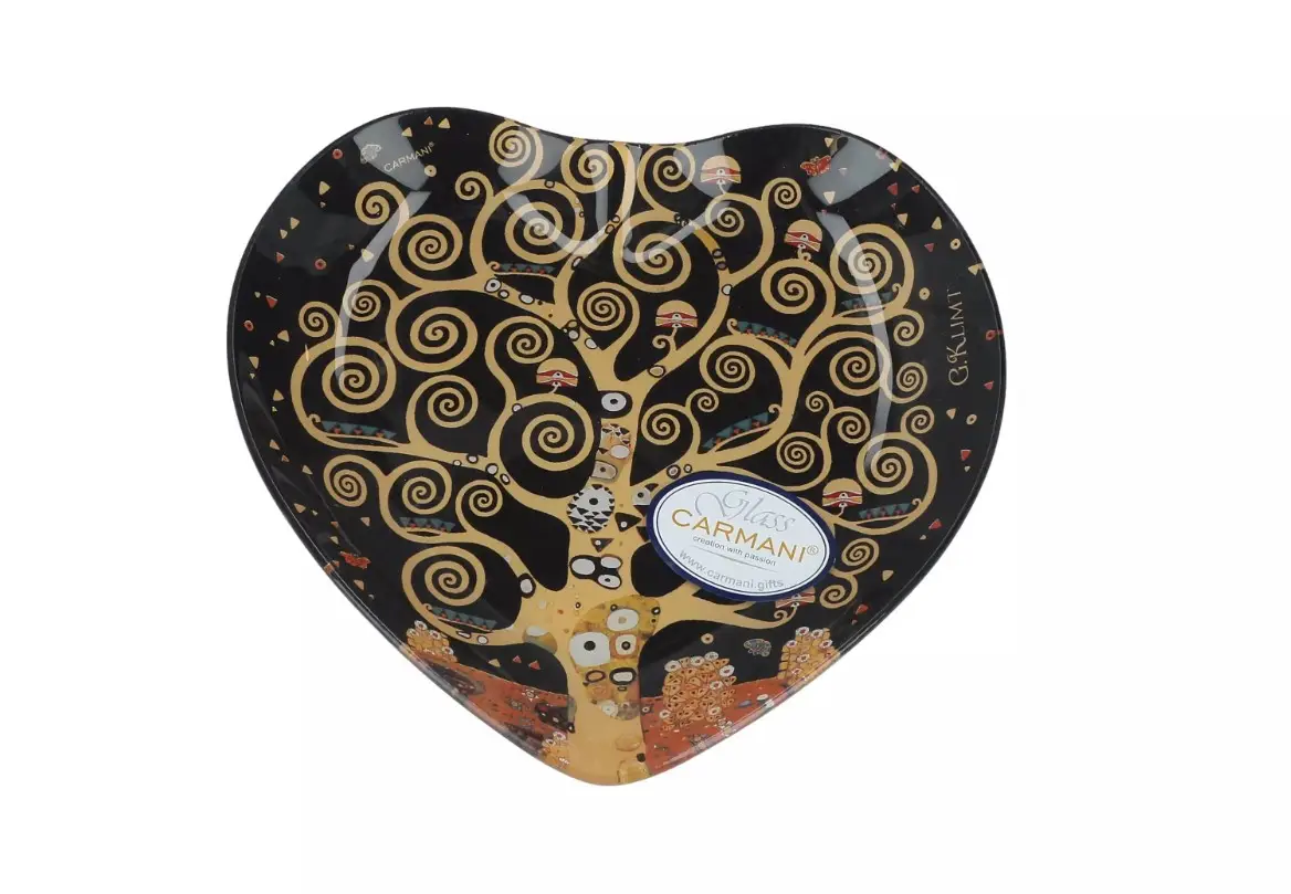 Стеклянная тарелка-сердце Carmani «Густав Климт. Дерево жизни» — любовь, воплощённая в форме и цвете