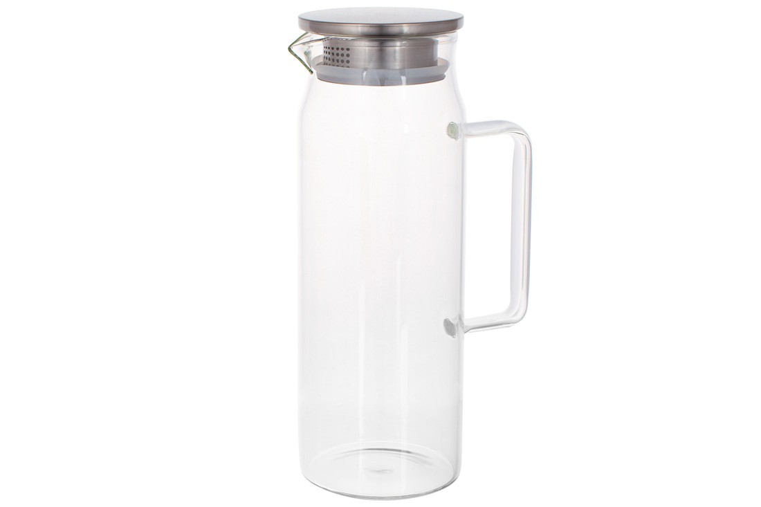 Кувшин стеклянный Lora с крышкой и фильтром из нержавеющей стали. Высокий кувшин с ровными стенками и большой удобной стеклянной ручкой. Предназначен для подачи компотов, соков, лимонадов, различных освежающих безалкогольных и слабоалкогольных коктейлей.