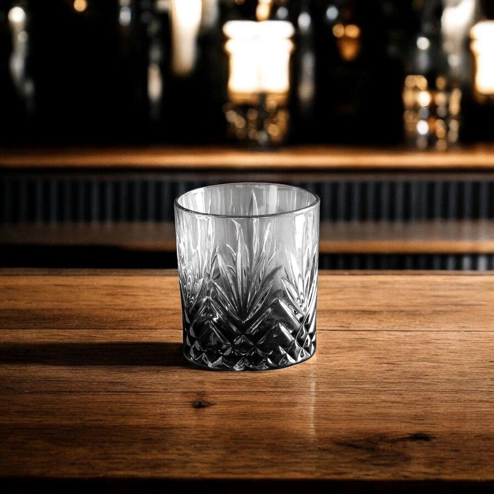 Коллекция стеклянных стаканов «Whiskey Art» — это современное переосмысление классических форм. Каждый стакан из набора имеет уникальный рельефный рисунок, который создаёт игру света и подчеркивает напиток внутри. Благодаря широкому дну и толстым стенкам, они отлично подходят для виски, бурбона, рома, а также безалкогольных напитков со льдом.