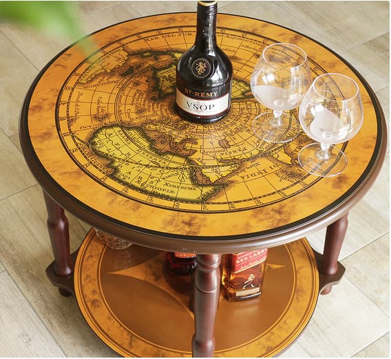 Столик-бар для подачи алкоголя Карта мира 60 см, который поддержит дружескую атмосферу с друзьями или родственниками. Относится к напольной мебели, которую вполне вероятно использовать не только лишь только как передвижную функциональную мебель, но и как роскошное дополнение к декору.