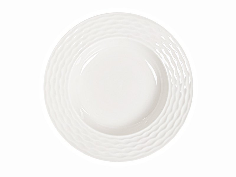 Белоснежная поверхность с текстурой мягких волн и тонкий золотистый кант создают впечатление лёгкости, чистоты и вкуса. Эти предметы посуды не кричат о себе — они подчёркивают изысканность пространства, становятся фоном для идеальной сервировки.