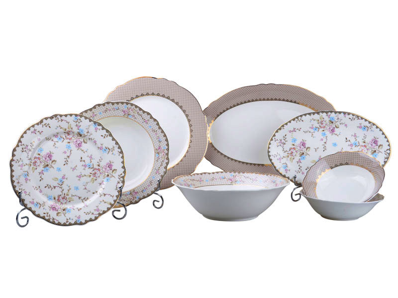 Столовый набор «Диана» на 23 предмета — это воплощение элегантности и нежности для вашего праздничного и повседневного стола. Изящный фарфор с нежным цветочным узором и золотистым кантом превращает каждое застолье в утончённую церемонию. Тонкие линии, пастельные оттенки и гармоничные формы создают атмосферу уюта и изысканности.