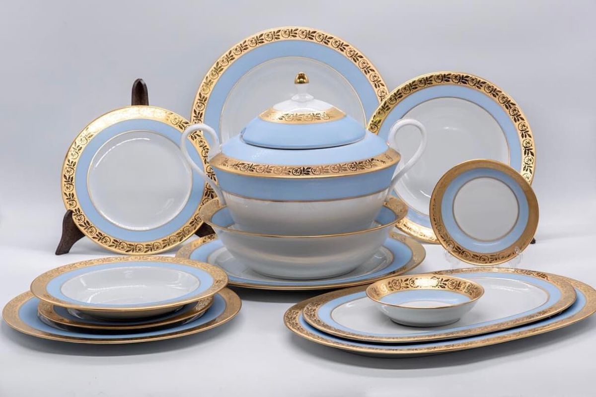 Сервіз "Блакитна стрічка" виготовлений з високоякісної кістяної порцеляни. Добре продумана комплектація дозволяє використовувати для будь-якої події, яка чекає на Вас протягом життя. Прекрасний дизайн декору підкреслює чудову якість кістяної порцеляни і відображає мотиви древніх вулканічних гір Малої Азії із загадковими підземними містами, що перетворюються на блакитне небо. У вензелях і вигинах химерних золотих візерунків видно загадку, таємниця і недомовленість сходу з її казковою Каппадокією.