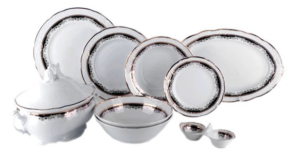 Столовий сервіз розрахований на 6 персон, в комплект входить необхідні предмети для сервірування столу. При необхідності столовий сервіз можна комплектувати наборами тарілок на велику кількість осіб або додатковими окремими предметами для сервірування. Сервіз цього декору ідеально поєднується з іншими елементами урочистого столу.
