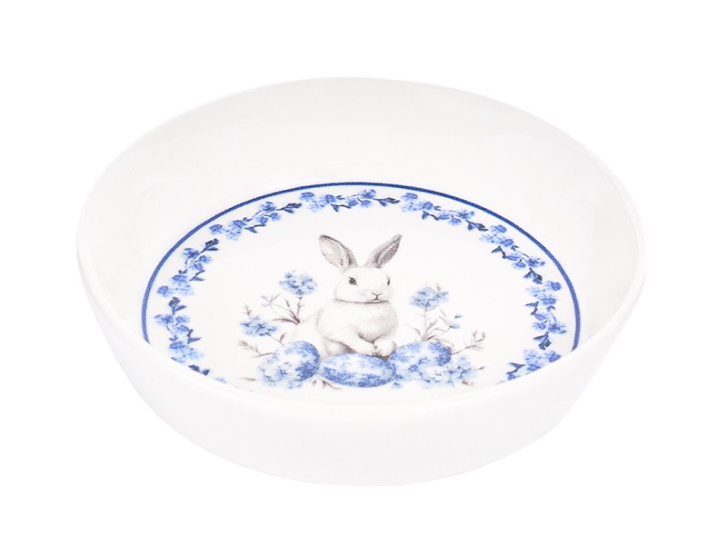 Блюдо тематичне керамічне кругле «Голубий Зайчик» 23 см — це чарівне поєднання затишку та делікатного декоративного стилю. У центрі композиції — милий зайчик, оточений ніжними блакитними квітами та орнаментом, що створює відчуття спокою і тепла. Світла зовнішня поверхня підкреслює чистоту форми, а детальний малюнок всередині робить виріб виразним і таким, що запам’ятовується.