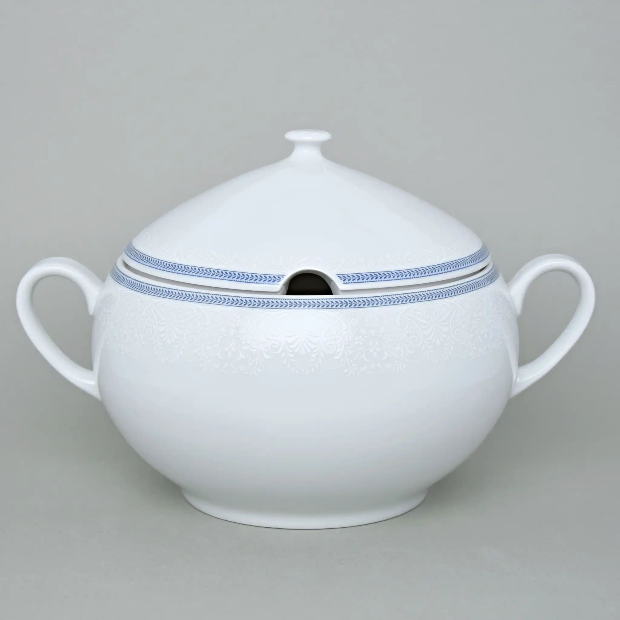 Супница фарфоровая белая с голубой окантовкой Thun Opal Голубые Пластинки 2.8 л