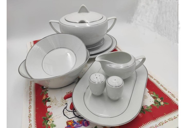 Фарфоровая супница Thun Lea объёмом 2,7 литра — это сочетание чешского качества и практичного дизайна для современной кухни. Белоснежная поверхность дополнена аккуратной платиновой окантовкой, что делает посуду уместной как для будничных ужинов, так и для торжественных застолий. Её форма удобна для подачи первых блюд, а крышка надёжно сохраняет тепло и вкус.