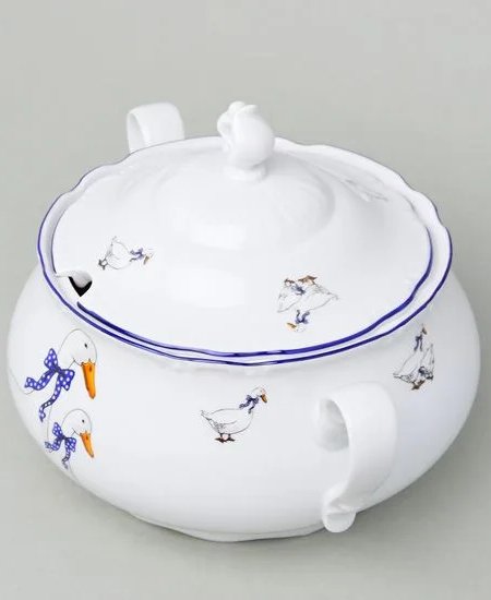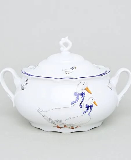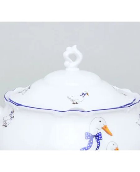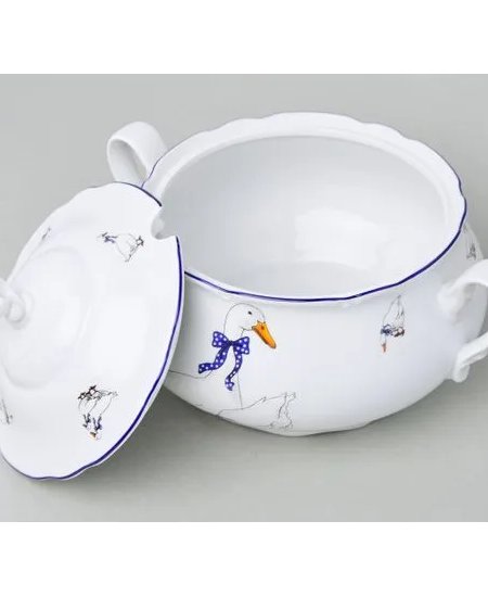 Супниця порцелянова біла з малюнком Thun Constance Гуси із синім кантом 2,3 л