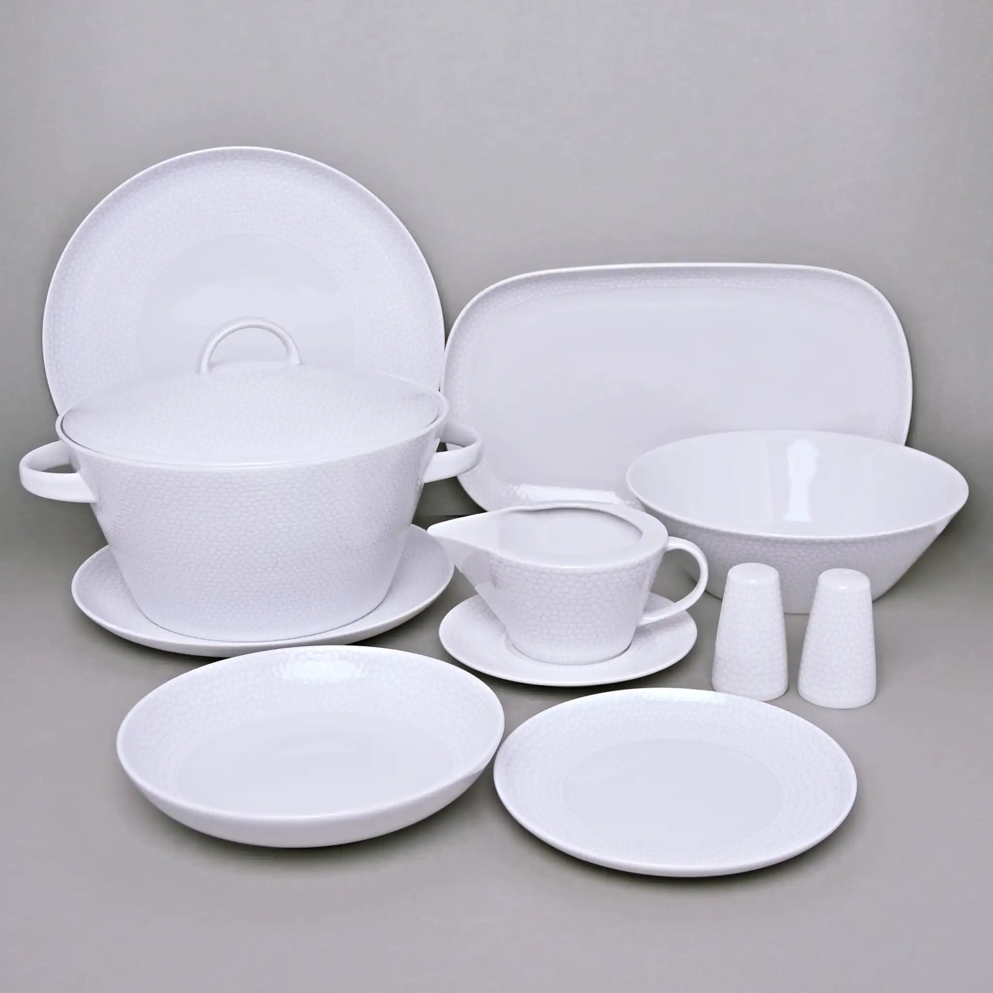 Білосніжна порцеляна з м’яким рельєфним візерунком додає вишуканості будь-якому інтер’єру. Завдяки кришці та зручним ручкам, супницю легко переносити та сервірувати прямо на стіл. Вона виглядає святково навіть без додаткових прикрас.